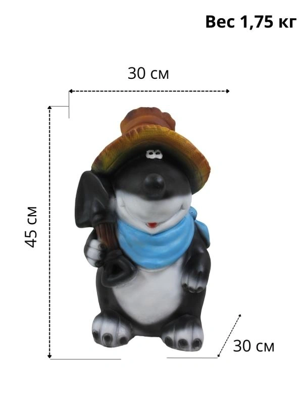 Ищете чем можно украсить сад или дачу? Садовая фигурка "Крот в шляпе" станет одним из самых оригинальных элементов декора Вашего ландшафтного дизайна. Она прекрасно дополнит альпийскую горку, зеленый газон и даже искусственный водоем. Прекрасный дизайн фигуры не оставит равнодушных и привлечет взгляд Ваших гостей. Материал фигурки изготовлен из искусственного камня - полистоун. Благодаря отсутствию микротрещин и пор, в теле камня не "заселяется" грибок и разные болезнетворные бактерии, кроме того хорошо переносит перепады температур. Фигурка для сада может послужить отличной идеей для подарка друзьям и близким, которые будут приятно удивлены и рады такому необычному сюрпризу. Высота(45),ширина(30) и длина(30). Обратите внимание на то, что каждое изделие мы тщательно упаковываем в пузырчатую пленку и коробку, чтобы фигурка пришла в полной целостности и сохранности. Не забывайте, что в нашем магазине представлен большой выбор интерьерных статуэток для дома, сада и дачи.