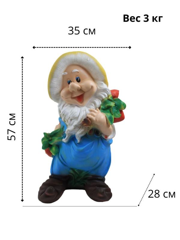 Ищете чем украсить сад или дачу? Фигурка садовая "Гном с овощами" станет оригинальным элементом декора Вашего ландшафтного дизайна. Фигура декоративная прекрасно разместятся на альпийской горке, зеленом газоне и даже искусственном водоеме. Дизайн гнома не оставит равнодушных и привлечет взгляд Ваших гостей. Статуэтка изготовлена из искусственного камня - полистоун. Благодаря отсутствию микротрещин и пор, в теле камня не "заселяется" грибок и разные болезнетворные бактерии, кроме того хорошо переносит перепады температур. Садовая фигура гнома с овощами служит отличной идеей для подарка друзьям и близким, которые будут приятно удивлены и рады такому необычному сюрпризу. Высота(57),ширина(28) и длина(35). Обратите внимание на то, что каждое изделие мы тщательно упаковываем в пузырчатую пленку и коробку, чтобы фигурка пришла в полной целостности и сохранности. Не забывайте, что в нашем магазине представлен большой выбор интерьерных статуэток для дома, сада и дачи.