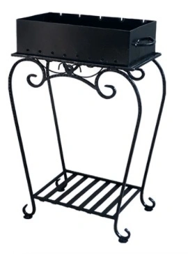 Кованый мангал 861-14 с изящными коваными ножками. А специальная подставка для дров внизу, поможет сохранить дрова в сухости. Конструкция из кованого металла украшена изящной ажурной ковкой.