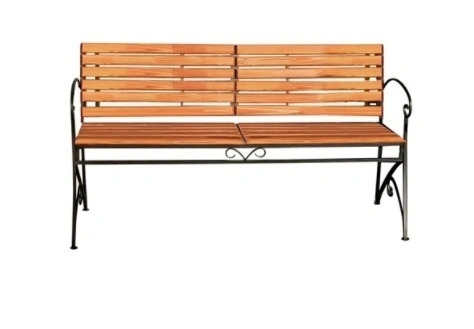 Простая и красивая садовая скамейка, изготовленная из двух материалов: металла и дерева. Она сможет украсить ландшафт парка или садового участка.