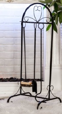Кованая стойка для хранения каминных аксессуаров, входящих в комплект: лопатка, щетка, совок. Каминные принадлежности всегда находятся под рукой и хранятся в одном месте.
