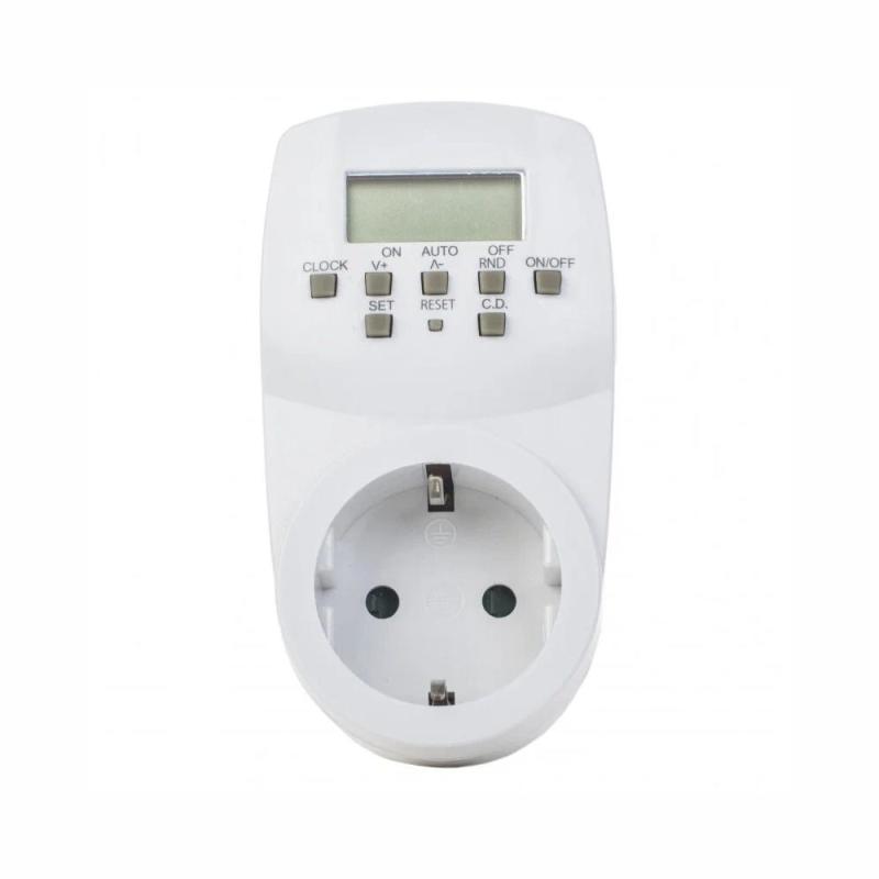 Таймер электронный с розеткой UST-E20 WHITE от Uniel предназначен для автоматического включения и выключения светильников и иных электроприборов не нагревательного типа по заданному расписанию. Устройство может использоваться для управления работой фитосветильников, аквариумов, освещения теплиц, птичников и других задач. Рассчитан на максимальную мощность нагрузки 1600 Вт/7А. Таймер имеет 20 интервалов установки времени, возможно задавать установки и по времени и по дням недели. Встроенный аккумулятор обеспечивает энергонезависимую память, что позволяет не сбиваться настройкам при скачках напряжения или отключении электричества. Прибор позволяет создавать различные программы управления, может использоваться как часы. Корпус таймера выполнен из прочного белого пластика и имеет стильный внешний вид. Степень пылевлагозащиты IP20.