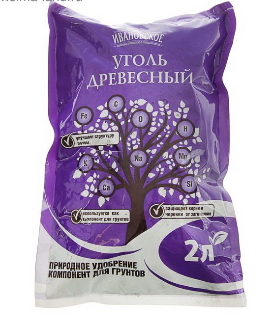 Уголь древесный получается путём выжигания из чистой древесины особым способом. Он в цветоводстве используется как один из элементов земляных смесей в качестве дренажа для горшков с комнатными растениями. Для этих целей предпочтительно брать кусочки фракцией (размером) около 1 см в диаметре. Если уголь более крупный, тогда придётся измельчить самостоятельно.