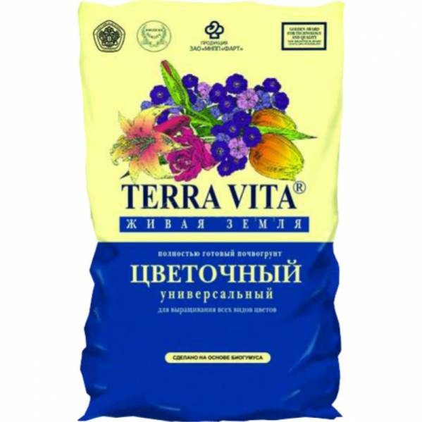 Грунт TERRA VITA® (Живая земля®) цветочный – это питательный полностью готовый грунт для выращивания всех видов садовых и комнатных цветов, а также декоративнолистных растений. Состав грунта был специально разработан для того, чтобы повысить качество, ускорить рост, увеличить цветение растений, выращиваемых дома и в саду. Содержит биогумус – естественный стимулятор роста растений, а также макро- и микроэлементы.