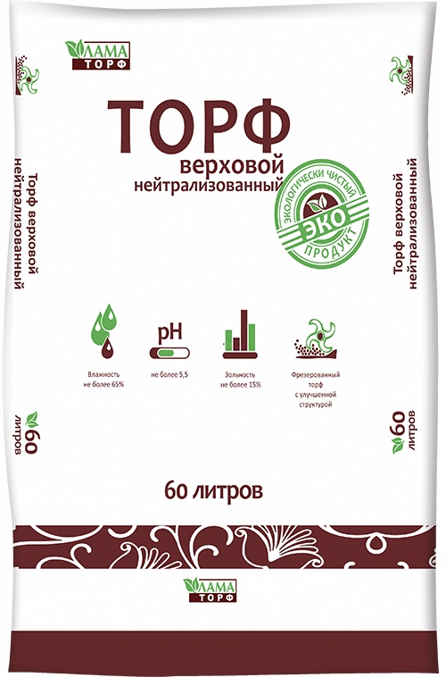Структура: зольность не более 15%, влажность не более 65%, степень разложения торфа не более 18%.