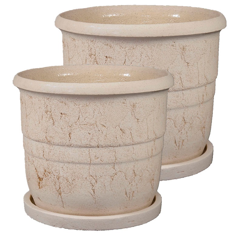 Горшок керамический Титан выполнен в форме цилиндра с немного расширяющимися краями. Имеет дренажное отверстие и поддон и изготавливается в спокойном, лаконичном, бежевом цвете. Горшок представлен серией из двух горшков большого размера, эта особенность позволяет сажать в него большие декоративные растения и деревца. Он подойдёт для озеленения больших торговых центров, офисов, спортивных комплексов и административных зданий. С его помощью можно украшать входные зоны с такими растениями как: шефлера, юкка, рапис, разбивать пространство на отдельные области с более раскидистыми и лиственными растениями, такими как: ливистона, фикус, кротон петра, создавать фитозоны в комнатах