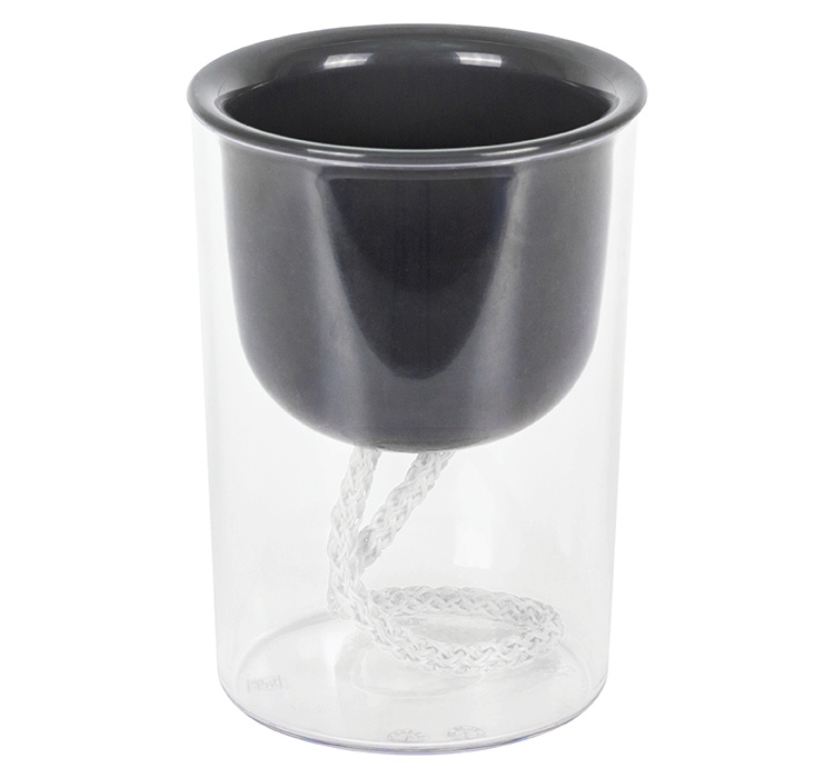 Кашпо ГРЕВИ состоит из основного прозрачного корпуса, вставки и фитиля.