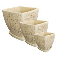 Горшок керамический Персей выполнен в виде высокой чаши с квадратным сечением, с расширяющимися вверх стенками. Оригинальности горшку придаёт декор, расположенный по всей площади горшка в виде коричневых трещинок, имитирующих растрескавшуюся поверхность. Необычная форма, и эффектный декор делают горшок уникальным и интересным элементом декора, который прекрасно подойдет как для домашнего интерьера, так и для интерьеров торговых центов, офисов, административных зданий. Горшок большого размера удачно украсит интерьер с такими растениями как: юкка, шефлера, рапис, ливистона.