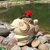 Фигура для сада Рыба является оригинальным керамическим кашпо, выполненным в форме большой рыбы. В центре скульптуры расположено отверстие для посадки растений. Фигура для сада Рыба является интересной универсальной фигурой и может быть установлена как скульптура большой рыбы рядом с водоёмом, также в неё можно посадить растения, как в кашпо и поставить рядом с домом. Она может быть установлена на балконе или лестнице как подставка для ваших любимых цветов в горшках, которые по необходимости вы можете поменять и тем самым быстро украсить пространство. Выполненная из натуральной шамотной глины фигура для сада Рыба красиво оформит и украсит ваш сад.