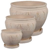 Горшок керамический Голиаф выполнен в сдержанном бежевом цвете и имеет бочонкообразную форму с небольшим ободком по верхнему краю. Горшок представлен серией в трёх размерах, имеет дренажное отверстие и поддон. Данный горшок, имеющий разные размеры, даёт возможность пересаживать выросшее растение в более больший горшок, не изменяя стилистики интерьера. Также он позволяет создавать композиции и устанавливать горшки одной серии в помещении с разными по размеру цветами. Горшки, выполненные из шамотной глины, обладают уникальными свойствами. Они паропроницаемы, что позволяет корневой системе растений «дышать» и создаёт отличные условия для роста.