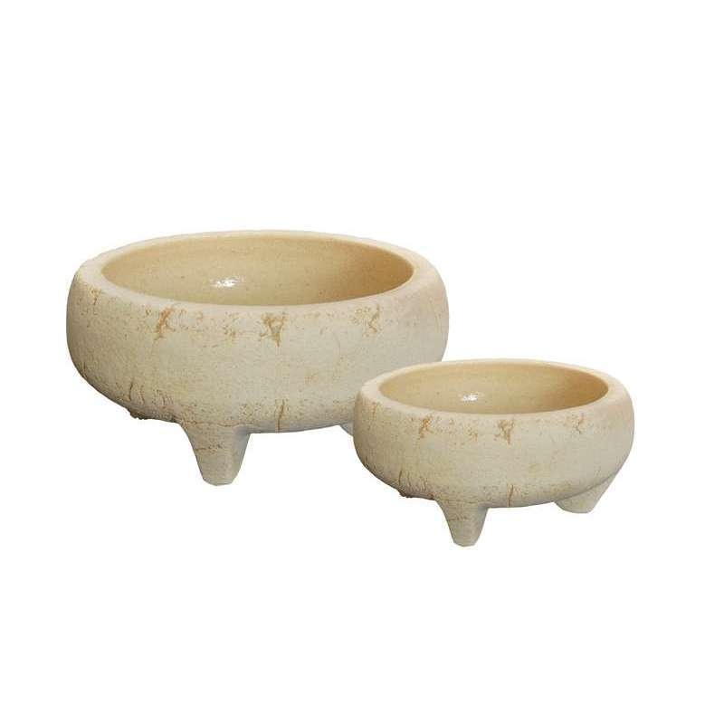 Керамическое кашпо Плошка изготавливается в виде двух моделей низких кашпо: круглой сжатой чаши на трёх небольших ножках двух разных размеров. Кашпо выполнены в бежевом спокойном цвете и прекрасно подойдут для ярких растений с цветами, не будут отвлекать внимание. Гармонично в них будут смотреться такие декоративные растения как: фиалки, цикломен, гусмания, маранта триколор. Керамические кашпо отлично подойдут для посадки в них кактусов и суккулентов, красиво будет смотреться каменная роза и хавортия. Стенки кашпо паропроницаемы, что позволяет корневой системе растений дышать и соответственно отлично расти и развиваться. Кашпо устойчивы к перепадам темп. и могут быть установлены на улице.