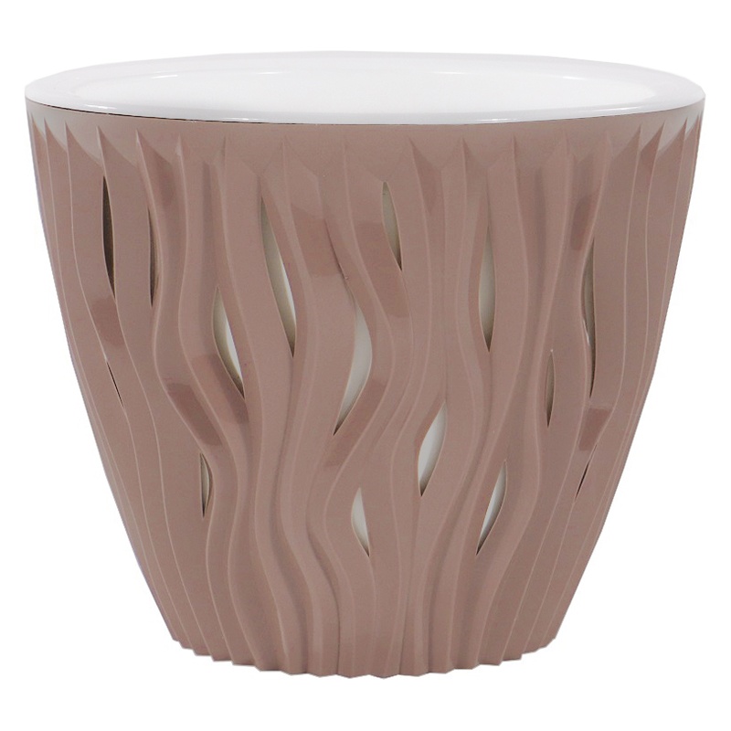 Знакомьтесь, лидер продаж: стильные кашпо серии "Вдохновение" с объёмной волнообразной текстурой станут украшением любого интерьера - от сдержанного офисного до уютного домашнего. Кашпо представлены в самых разных объёмах, а потому подойдут для больших и маленьких растений, простых цветов и сложных флористических композиций. Конструкция предусматривает удобные технологичные ручки, которые упрощают уход за растением, а дренажная вставка обеспечивает отвод воды от грунта и позволяет дышать корневой системе.