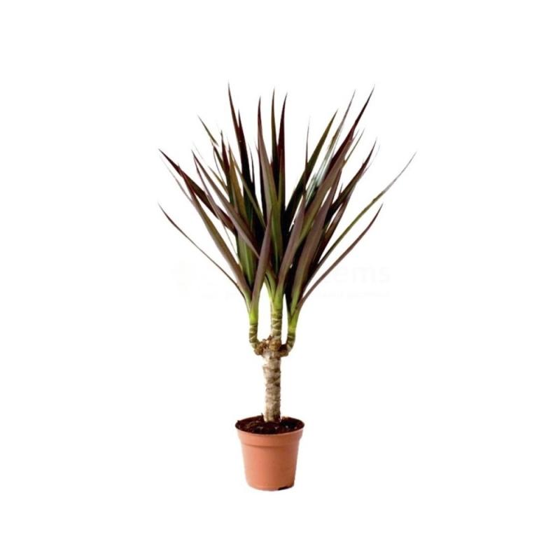 Драцена Маргината Маджента (Dracaena marginata Magenta) — декоративно-лиственное растение с узкими длинными листьями тёмно-зелёного цвета и насыщенной малиновой или пурпурно-розовой каймой. Это разновидность драцены окаймлённой (Маргинаты), которая отличается более выразительным контрастом между основой листа и его краем. Растение формирует аккуратный ствол и воздушную крону, напоминает миниатюрную пальму. Подходит для дома, офиса или зимнего сада. В природе драцена может достигать 3–5 м, в комнатных условиях — 1,5–3 м. Растёт примерно на 15–20 см в год. Предпочитает яркий рассеянный свет или лёгкую полутень. Прямые солнечные лучи могут обжечь листья или привести к их обесцвечиванию. При недостатке света бордовая кайма становится менее насыщенной.