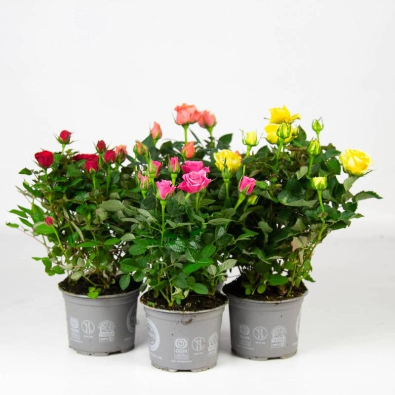 Роза Кордана порадует своего обладателя продолжительным цветением. Оно начинается в конце апреля и длится до октября. Во время цветения образуются миниатюрные бутончики. Цветущая роза представлена в несколько цветовых вариациях, у нас есть: белая роза, красная, жёлтая, синяя, розовая и фиолетовая. Мелкая, тёмно-зеленая листва и густые веточки кустовой розы, добавляют особой декоративности.