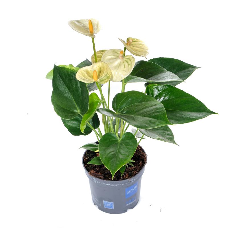 Антуриум Андрианум Ванилла — уникальное и красивое растение, принадлежащее к семейству ароидных. Это растение известно своими потрясающими сердцевидными листьями с темно-зелеными жилками и краями, которые могут быть как гладкими, так и волнистыми. Что делает это растение особенным, так это его яркие цветы, которые выглядят как кремово-белые початки, окруженные бледно-желто-зеленым покрывалом. Цветут круглый год. Антуриум Ванилла — растение, относительно легкое в уходе, прекрасно растет при ярком непрямом свете и умеренной влажности. Он предпочитает хорошо дренированную почвенную смесь, и его следует поливать, когда верхний слой почвы становится сухим на ощупь. При правильном уходе антуриум ванильный может вырасти до 50-70 см в высоту, добавляя элегантности любому пространству. Это растение — настоящая жемчужина для любителей растений, которые любят уникальную и яркую листву в сочетании с красивыми цветами.