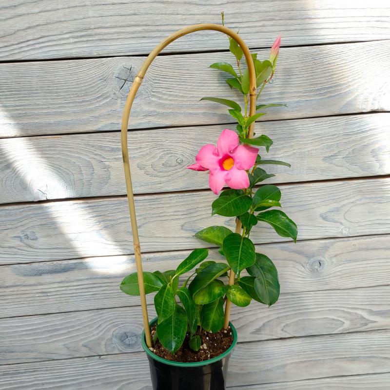 Дипладения (Dipladenia), также известная как мандевилла (Mandevilla), — вечнозелёная лиана из семейства кутровые с яркими ароматными цветками. Растение быстро растёт, имеет глянцевые овальные листья и воронковидные цветки белого, розового, малинового или красного цвета. На взрослом кусте одновременно может раскрыться до 80 цветков, которые не увядают больше недели. Подходит для выращивания дома, на балконе, террасе или в оранжерее. Растение не переносит холодного ветра и плохо дренированную почву. ребуется яркий рассеянный свет. Идеальны восточные и западные окна. На южном окне понадобится притенение в полдень, на северном растение цвести не будет.
