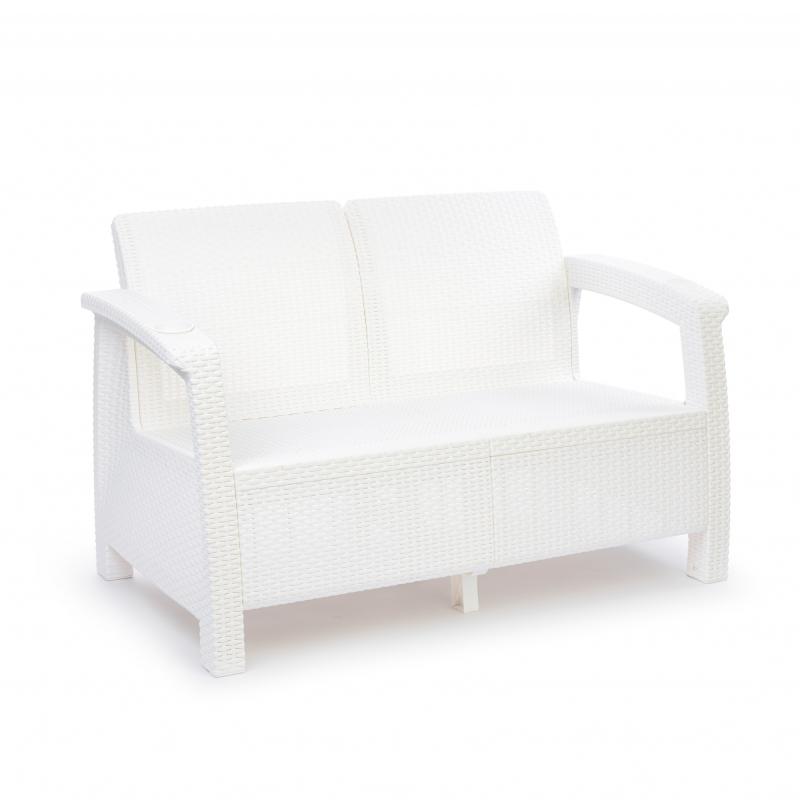 Диван произведен из высококачественного полипропилена, имитирующего плетение из ротанга. Диван имеет два посадочных места, допустимая нагрузка на одно посадочное место - 106 кг (212 кг). На подлокотниках дивана расположены отверстия для напитков. Диван может стать идеальным решением по оформлению зоны отдыха в доме, на садовом участке, в офисном помещении или в кафе. Благодаря цветовым решениям, диван подойдет под любой интерьер. Диван упаковывается в индивидуальную упаковку, инструкция по сборке прилагается.Зону отдыха также можно дополнить журнальным столиком и креслами серии «Ротанг».