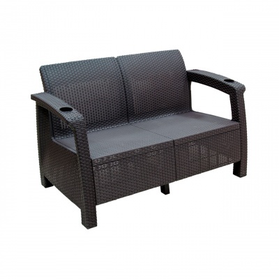Диван произведен из высококачественного полипропилена, имитирующего плетение из ротанга. Диван имеет два посадочных места, допустимая нагрузка на одно посадочное место - 106 кг (212 кг). На подлокотниках дивана расположены отверстия для напитков. Диван может стать идеальным решением по оформлению зоны отдыха в доме, на садовом участке, в офисном помещении или в кафе. Благодаря цветовым решениям, диван подойдет под любой интерьер. Диван упаковывается в индивидуальную упаковку, инструкция по сборке прилагается.Зону отдыха также можно дополнить журнальным столиком и креслами серии «Ротанг».