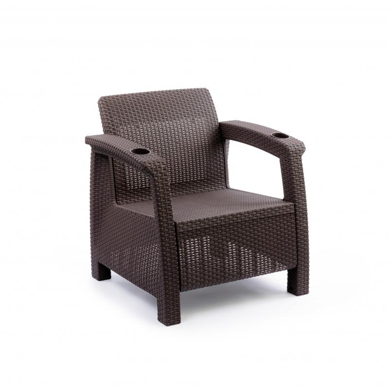 Кресло произведено из высококачественного полипропилена, имитирующего плетение из ротанга. Кресло имеет одно посадочное место, допустимая нагрузка на одно посадочное место - 106 кг . На подлокотниках дивана расположены отверстия для напитков.Кресло может стать идеальным решением по оформлению зоны отдыха в доме, на садовом участке, в офисном помещении или в кафе.Зону отдыха также можно дополнить журнальным столиком и диванами серии «Ротанг». Размеры изделия (ДхШхВ) 730х700х790 мм