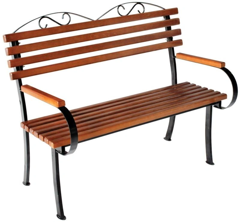 Каркас изготовлен из качественного стального профиля, покрытого порошковой краской. Все поверхности изготовлены из древесины хвойных пород. Для защиты деревянных элементов от неблагоприятного воздействия внешней среды, различных вредителей и грибков, произведена обработка антисептической пропиткой, и выполнено покрытие лаком.