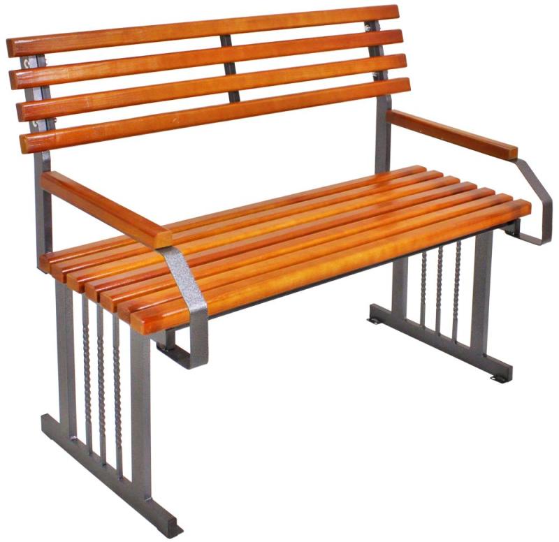 Каркас изготовлен из качественного стального профиля, покрытого порошковой краской. Все поверхности изготовлены из древесины хвойных пород. Для защиты деревянных элементов от неблагоприятного воздействия внешней среды, различных вредителей и грибков, произведена обработка антисептической пропиткой, и выполнено покрытие лаком.