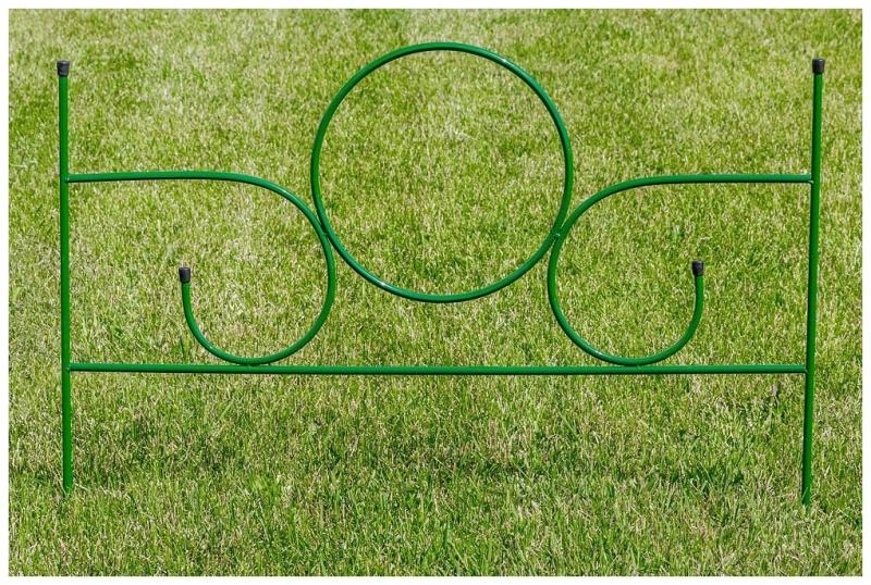 Заборчик яркого зеленого цвета позволяет красиво оформить грядки и различные сооружения на дачном участке. Изготовлен из металлической трубы. Устанавливается напрямую в грунт.