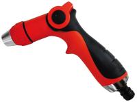 Для полива садовых растений. Включение, выключение и регулировка водной струи осуществляется с помощью оригинального флажкового регулятора. Обрезиненная поворотная головка позволяет производить регулировку воды от жесткой струи до распыления. Комплектуется переходником с резьбы 3/4" на стандартное быстроразъемное соединение.