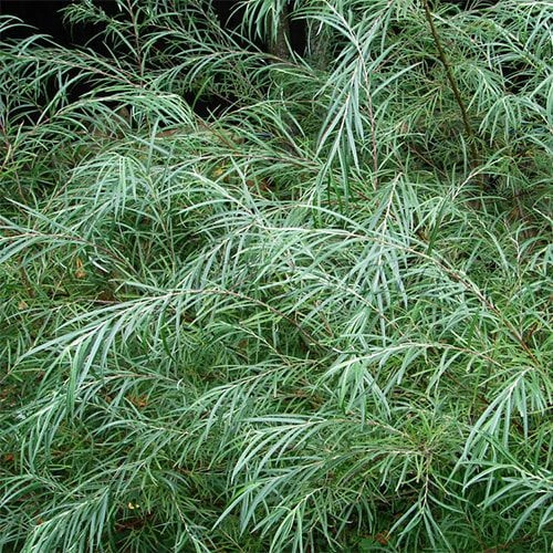 Кустарник высотой до 2-2,5 м с раскидистой кроной, многочисленными, тонкими, вверх направленными ветвями. Побеги тонкие, зеленоватые или буроватые, зимой - красно-пурпурные. Сережки округлые, как мелкие шарики, начинают распускаться раньше листьев. Листья линейно- ланцетные, сверху темно-зеленые, снизу сизоватые. Листья этой ивы напоминают листья средиземноморского кустарника розмарина, поэтому она и названа розмаринолистной.