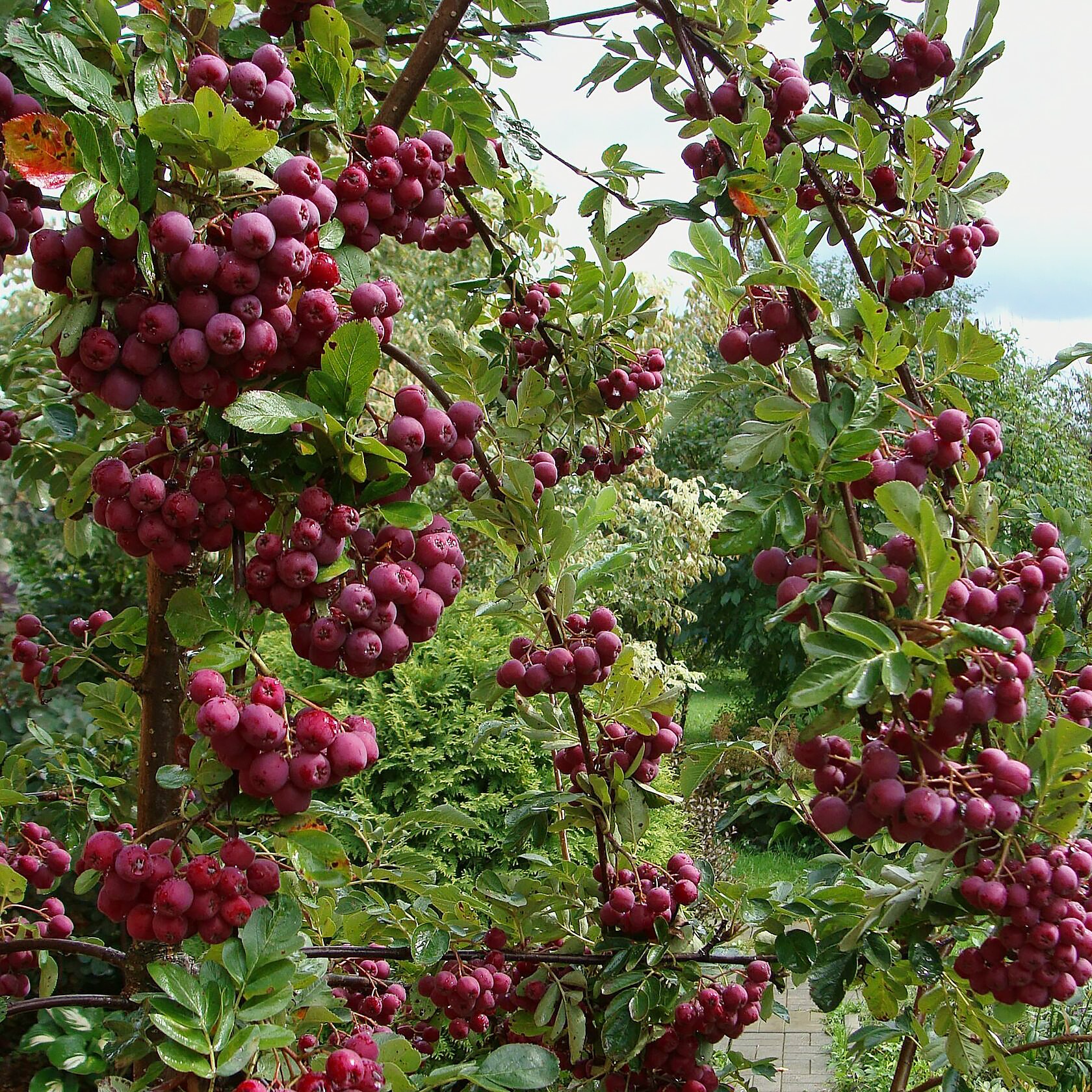 Листья: крупные, до 12 см в длину и 6 см шириной, очередные, непарноперистые, из 9–11 продолговатых зубчатых листочков тёмно-зелёного цвета, осенью становятся багряными.