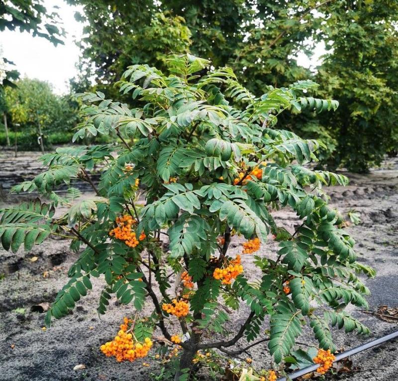 Рябина Глобозум – сорт вида обыкновенная. Это универсальный сорт, который может использоваться как в ландшафтном дизайне, так и в кулинарии. Растение имеет средний темп роста и является среднерослым, достигая высоты до 5 метров. Форма кроны шаровидная, густота средняя. Кора гладкая, серого цвета. Листья продолговатые, средние. Летом верхняя часть листьев имеет темно-зеленую окраску, а нижняя – более светлую. Осенью листья приобретают желто-оранжевую или оранжево-красную окраску. Поверхность листьев гладкая, структура нежная. Край зубчатый. Цветки имеют средний размер и белую окраску. Период цветения наступает в конце весны. Плоды имеют крупный размер (до 1,5 см), яблокообразную шаровидную форму и желтую или оранжево-желтую окраску. Мякоть желтая, средней плотности и сочная. Вкус горьковато-вяжущий. Срок созревания у рябины ранний, наступает в конце августа. В кулинарии сорт используется для приготовления компотов, варенья и желе. Глобозум предпочитает хорошо освещаемые солнцем участки и дренированные, свежие и влажные, суглинистые, кислые и слабокислые почвы. Полив должен быть умеренным.