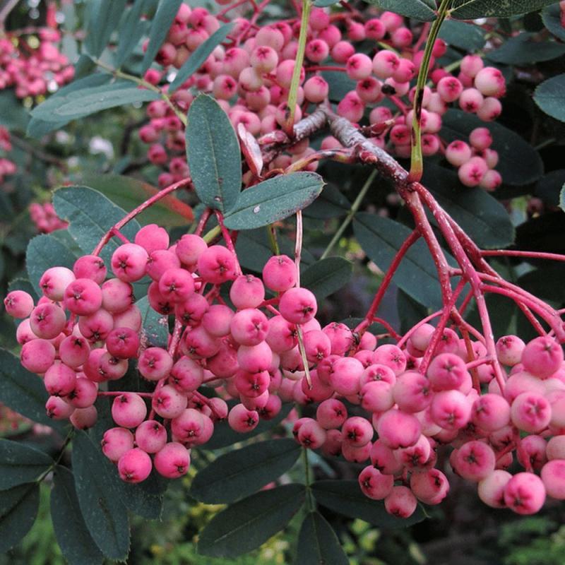 Плоды: шаровидные, диаметром до 1 см, розовые, съедобные, созревают в сентябре.