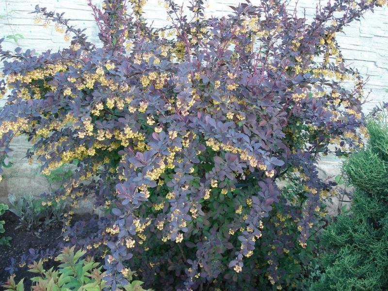 Цветёт барбарис оттавский в мае-начале июня. Его цветки жёлтые с красной отметиной, собраны в кисти по 10 штук.