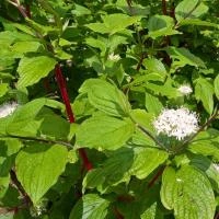Цветение начинается в мае или июне. Соцветия щитковидные, плоские или слегка выпуклые, диаметром 3,5–5 см, расположены на цветоножке длиной от 2 до 4 см. Цветки окрашены в белый цвет.