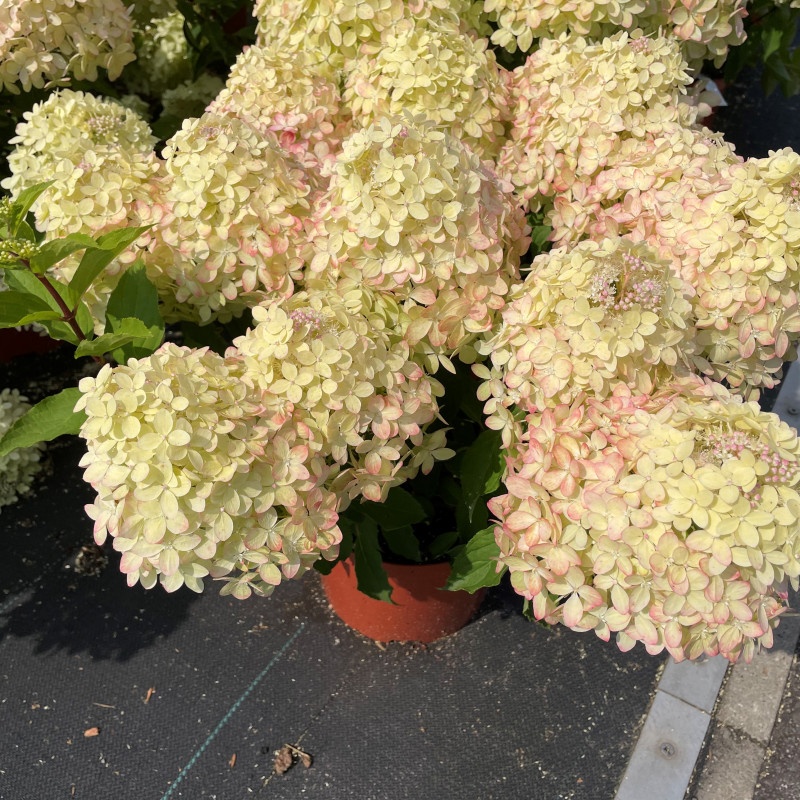 Цветение продолжительное, с июля до самых заморозков. Цветки меняют окраску в течение сезона: крупные соцветия зеленовато-кремовые, потом постепенно розовеют. Цветки сохраняют свою декоративность и по окончании цветения.