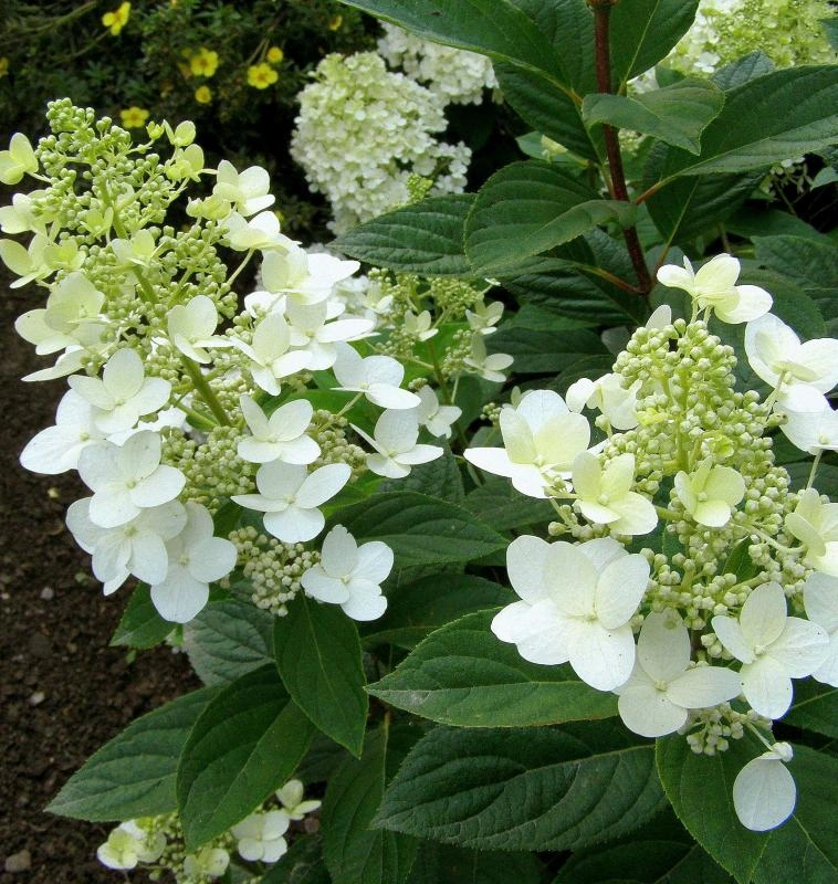 Соцветия: крупные, конические, достигают 25 см в диаметре. В начале цветения цветки кремово-белые, затем становятся белыми, а к концу цветения приобретают розовый оттенок и, наконец, красно-зелёный тон.