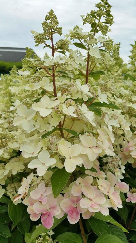 Соцветия: крупные, конусовидные, собранные в розетки, длиной около 25 см. Цветки с длинными цветоножками, светло-розовые летом, к осени становятся красными.