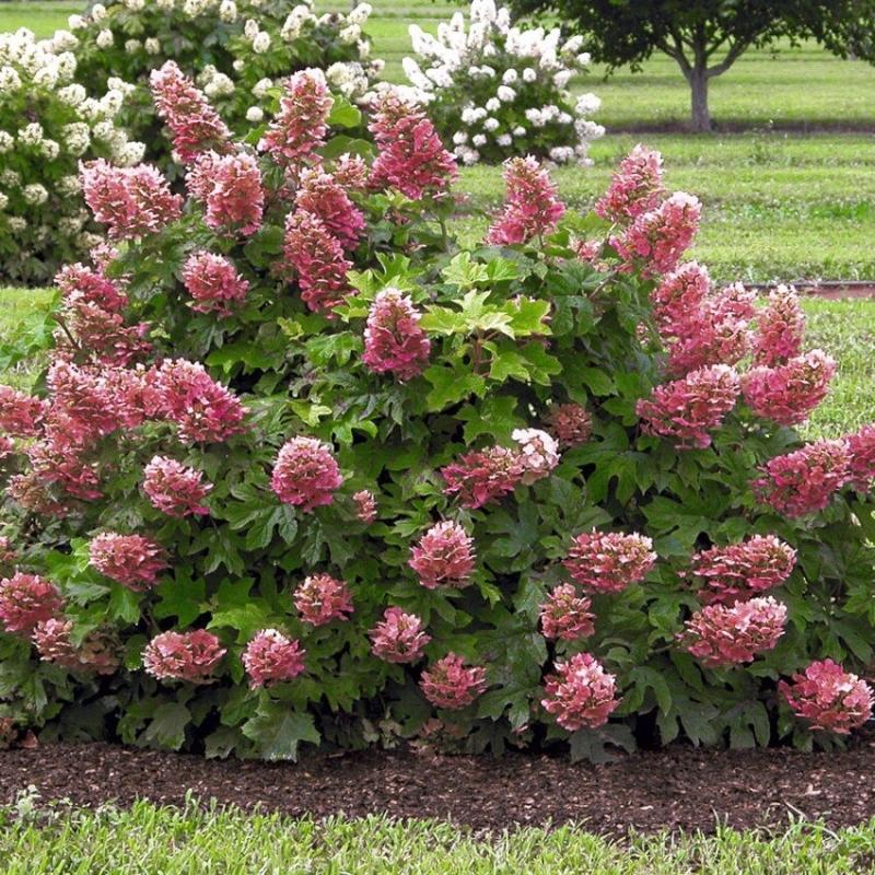 Очаровательная гортензия дуболистная Аметист отличается от других видов формой листовой пластинки, похожей на листья дуба или хризантемы. Оригинальная листва подчеркивает милую прелесть крупных цветочных кистей, которые трижды меняют свою окраску: при роспуске бутонов – цветы белые; в конце цветения – розоватые; в начале осени – пурпурные.