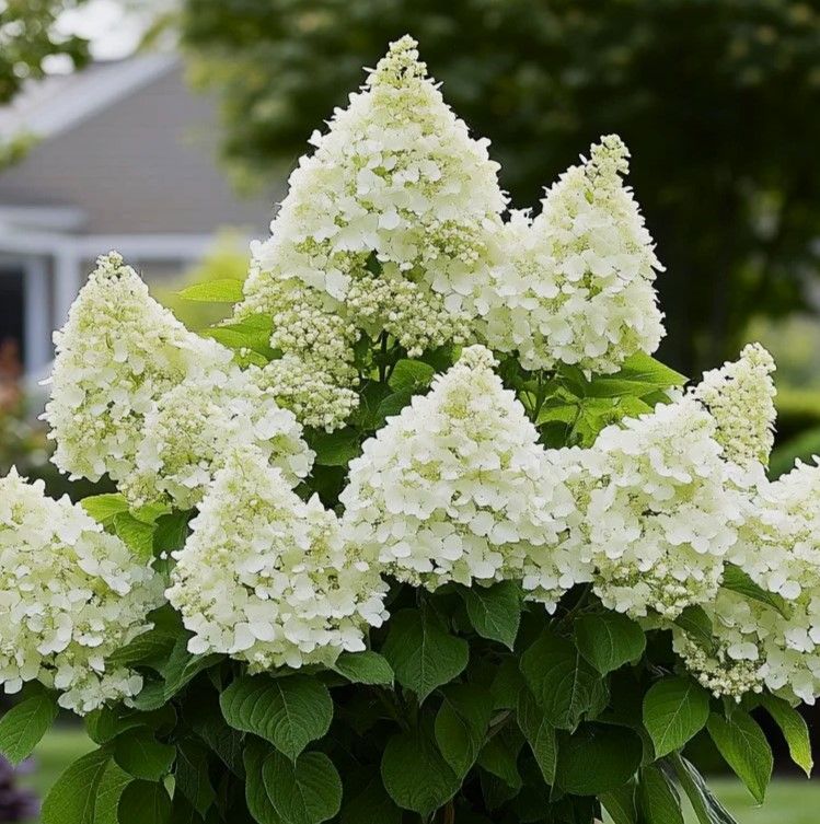 Соцветия меняют окраску: в начале лета — лаймово-зелёный оттенок, ближе к августу — белые и кремовые тона, к осени — нежно-розовый.