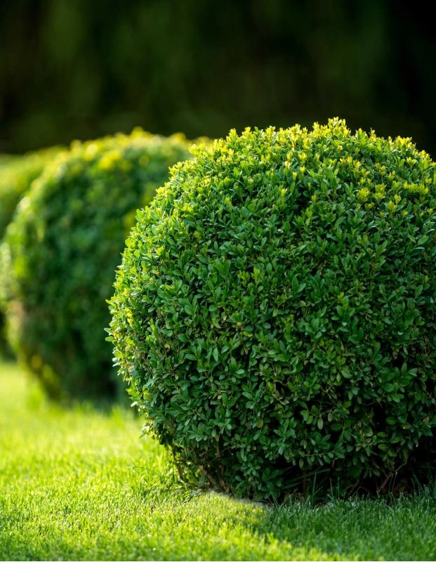 Кустарник до 2м. Побеги прямые, торчащие, четырёхгранные, зелёные, густо покрыты листьями. Листья на коротких черешках, почти сидячие, сильно различающиеся по форме, голые, с блестящей тёмно-зелёной верхней стороной и светло-зелёной, даже желтоватой нижней.кожистые листовые пластины эллипсовидной формы, растущие супротивно. Молодые листики характеризуются зелено-оливковым окрасом, но по мере взросления коричневеют и становятся жёсткими. Почва:плодородная, рыхлая, супесчаные и суглинистые. В ландшафтном дизайне самшит вечнозелёный применяется для оформления садовых дорожек, создания плотных и густых живых изгородей, украшения придомовой территории, прогулочных зон у дачных коттеджей и административных зданий.