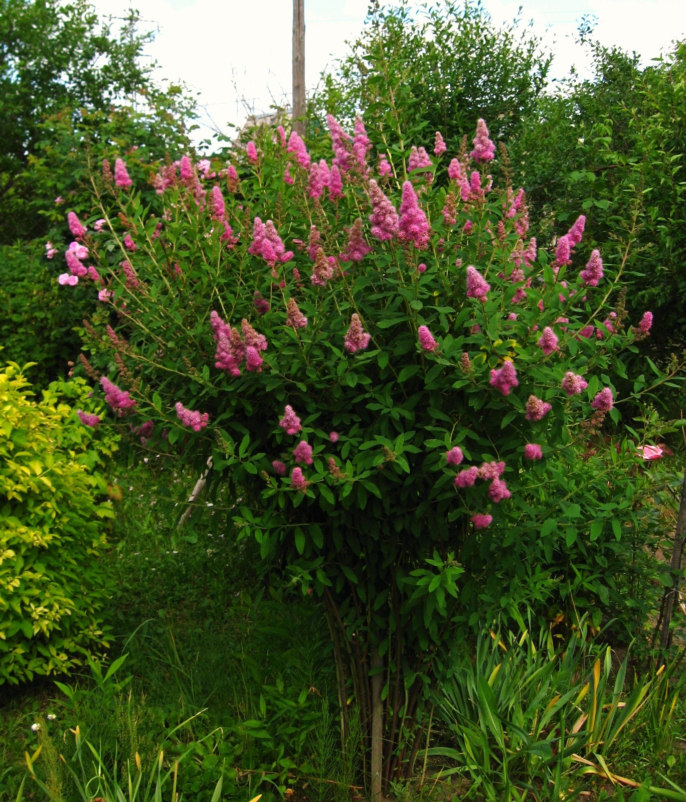 Спирея иволистная — морозоустойчивый пряморастущий кустарник высотой 1,5–2 м с плотной округлой кроной, образованной ребристыми побегами.