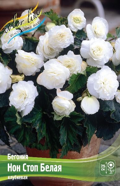 Бегония «Нон-стоп белая» — это клубневый гибрид с непрерывным, обильным цветением крупными, густомахровыми белыми цветками (9-11 см) с волнистыми лепестками, образующими крепкий куст высотой 20-30 см, с эффектными темно-зелеными или красновато-бронзовыми листьями. Она устойчива к дождю и ветру, идеальна для контейнеров, бордюров, балконов и интерьеров, предпочитает легкую полутень, обильный полив и тепло.