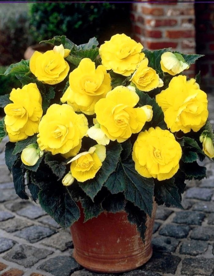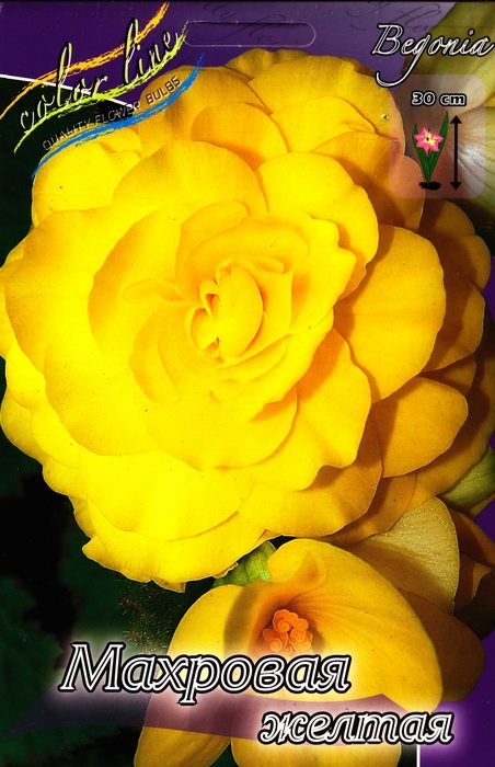 Бегония махровая желтая (Begonia Double Yellow) — это клубневое многолетнее растение с крупными густомахровыми цветками насыщенного желтого цвета, которые напоминают розочки или камелии.