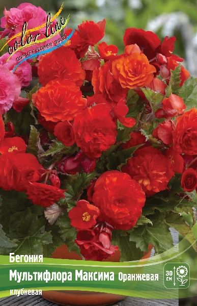 Бегония Мультифлора Максима Оранжевая — это многолетнее клубневое растение с компактным кустиком (до 25-30 см), обильно покрытым крупными (до 10 см), махровыми, ярко-оранжевыми цветами, похожими на камелии; она предпочитает плодородную, рыхлую почву, любит солнце или легкую полутень, обильный полив без застоя влаги и используется для клумб, балконов и горшков, цветет с июня до октября.