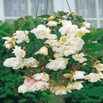 Бегония Пендула Белая (Begonia Pendula White) — это клубневое ампельное растение с каскадной формой роста и чисто-белыми махровыми цветками, которое идеально подходит для подвесных корзин и уличных вазонов.