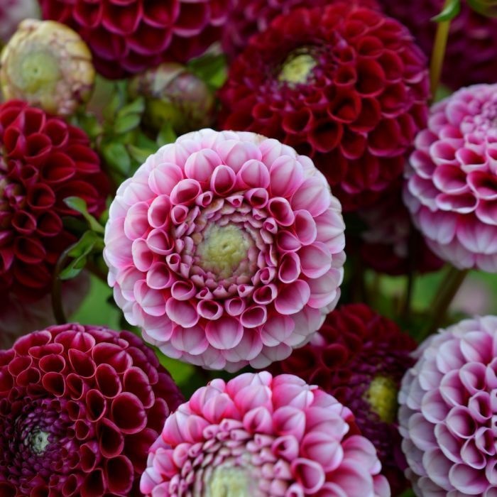 Тип цветка: Помпонная (густомахровая). Цветки состоят из множества плотно расположенных трубчатых лепестков, которые создают эффект аккуратного мягкого шара или помпона.