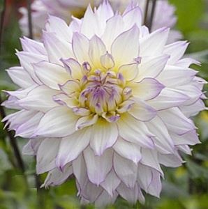 Цвет: Белый с тонкой сиреневой каймой и нежно-сиреневыми, раздвоенными кончиками лепестков, желтая серединка.