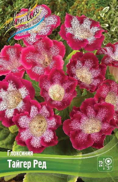 Глоксиния Тайгер Ред (Tiger Red) — эффектное компактное комнатное растение высотой 20-30 см, известное своими бархатистыми колокольчиками до 10-12 см диаметром, которые сочетают белый центр с малиновой крапинкой, переходящей в широкую красную волнистую кайму. Листья темно-зеленые, овальные, опушенные, с серебристыми прожилками. Цветение обильное, длится с мая по сентябрь, а растение любит яркий рассеянный свет, обильный полив под корень, рыхлую почву и предпочитает горшки по размеру клубня.