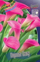 Калла 'Garnet Glow' — многолетнее клубневое растение, ценящееся за свои яркие малиново-розовые цветы, которые плавно переходят в светло-зеленый у основания. Это эффектный сорт, который подходит как для выращивания в саду, так и в горшках.
