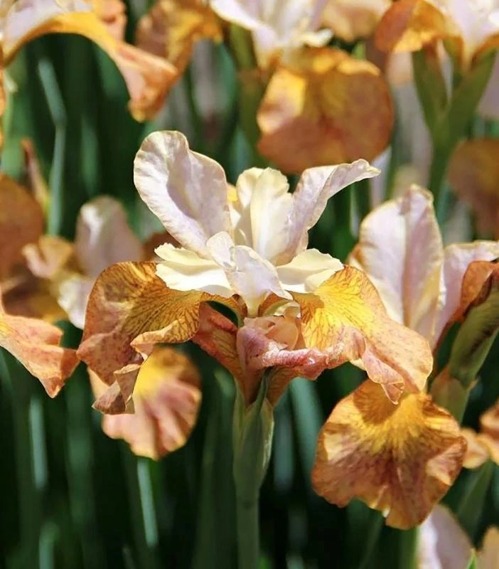 Ирис сибирский Джерри Мерфи — травянистое многолетнее растение, достигающее высоты 80–90 см. Цветки имеют гофрированные лепестки палево-абрикосового цвета с жёлтым кантом, а также кремово-розовые лепестки с жёлтыми мазками, размером 10-12 см. Имеет приятный сладкий аромат. На одном стебле вырастает по 5–7 цветков. Листья прямостоячие, зелёные, неширокие, многочисленные, сохраняют декоративность весь сезон. Цветение происходит в мае-июне. Используется вдоль садовых дорожек, на альпийских горках, для одиночных и групповых посадок, высаживают у водоёма, а также цветы отлично смотрятся в срезке. Зимостойкость: зона 4 (от -34 до -29 °C). Морозоустойчивые сорта можно не укрывать полностью на зиму, но корневую систему необходимо защитить.