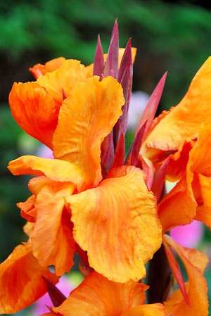 Канна 'Вайоминг' (Canna 'Wyoming') — это многолетнее корневищное растение, которое ценится за свою эффектную бронзово-коричневую листву и яркие оранжевые цветки.